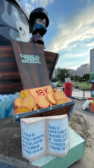 Otro de los personajes que aparecen son Pinocho, personificando a los timadores del “cuento del tío” y a los políticos en eterna campaña, mientras que regresan al monumento “los jubilados que siempre integraba mi abuelo, ya que reflejan la queja que, con la jubilación, no alcanza después de haber trabajado la vida entera”, reseñó el joven.