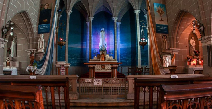 La capilla, de estilo neogótico ecléctico, es otra joya de la arquitectura marplatense y, en conjunto con el edificio del colegio homónimo, es Bien Patrimonial del municipio de General Pueyrredon. Ambos, colegio y capilla están cargo de la Congregación de las Hermanas Adoratrices.