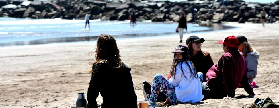 Otros fueron directo a la costa o a la playa. Minutos antes de las 10 ya se advertía una fuerte presencia de familias, grupos de amigos y parejas distribuidos sobre la arena con el infaltable termo de mate para disfrutar de la tranquilidad de la mañana junto al mar.